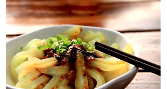 綿陽著名小吃之一的席涼粉,成品涼粉晶瑩剔透,調料紅色亮油,蔥花翠綠,在視覺上就讓人食欲大開,口感滑嫩爽口、清香微辣,不愧為享譽大半個世紀的名小吃